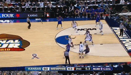 还剩2分多钟,堪萨斯依然落后9分,NCAA一个回合有35秒的时间,这9分的优势几乎让孟菲斯大学把胜利揣进兜里,但意外发生了。